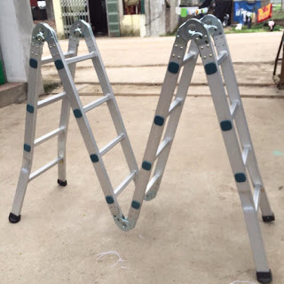 Thang chữ m hay còn gọi là thang gấp khúc với nhiều tư thế đứng .nhôm dày 1,5ly khóa tự động, thang nhập khẩu nguyên chiếc của đài loan.